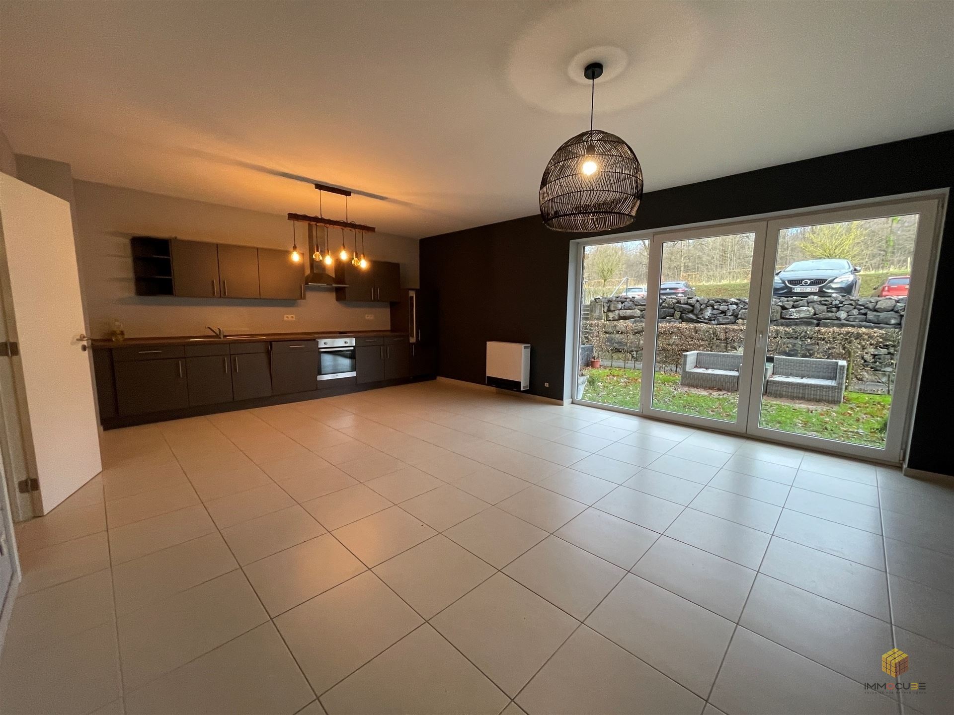 IMMOCUBE vous présente ce magnifique appartement situé au rez-de-chaussée dans le domaine du Château de Plainevaux. Il se compose d’un hall d’entrée, d’un WC séparé, d’une buanderie ainsi que d’une cuisine entièrement équipée (frigo, taque, four et lave-vaisselle) ouverte sur un spacieux et lumineux salon/salle à manger de 42m². Le hall de nuit dessert deux belles chambres (18 m² et 14 m²), dont une avec dressing, ainsi qu’une salle de douche avec WC. À l’extérieur, vous profitez d’un grand jardin privatif de 150 m² (seul le jardin est à entretenir, la haie est comprise dans les charges communes), d’une cave et d’un emplacement de parking privatif extérieur. Des emplacements de parking libres sont également disponibles pour les visiteurs. Aspects techniques : Chauffage électrique par accumulateurs, système VMC, châssis PVC double vitrage, vidéophone et ascenseur. Situation idéale, à seulement 8 minutes du CHU et du Sart-Tilman. Loyer : 990 €/mois + 90 €/mois de charges communes. Compteurs individuels. Libre à partir du 01/04/2026. PEB : N°20240216002718 - PEB: C : (E spec: 224 kWh/m².an - E totale: 24.966 kWh/an). Venez vite découvrir ce bien d’exception, alliant cadre verdoyant et confort moderne !